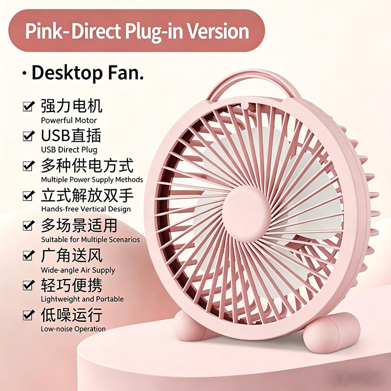 ✅ USB Desktop Fan: Compact plug-in design, perfect for desk, office, dorm, and home use